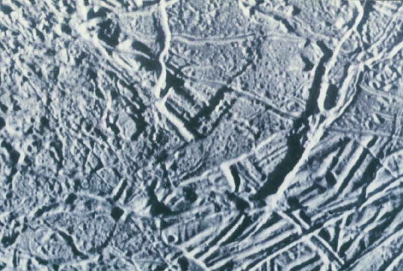 A picture of Greenland (Earth) and of Europa. The Earth picture was taken from a plane (ie from about 30,000 feet) by Francisco Diego.